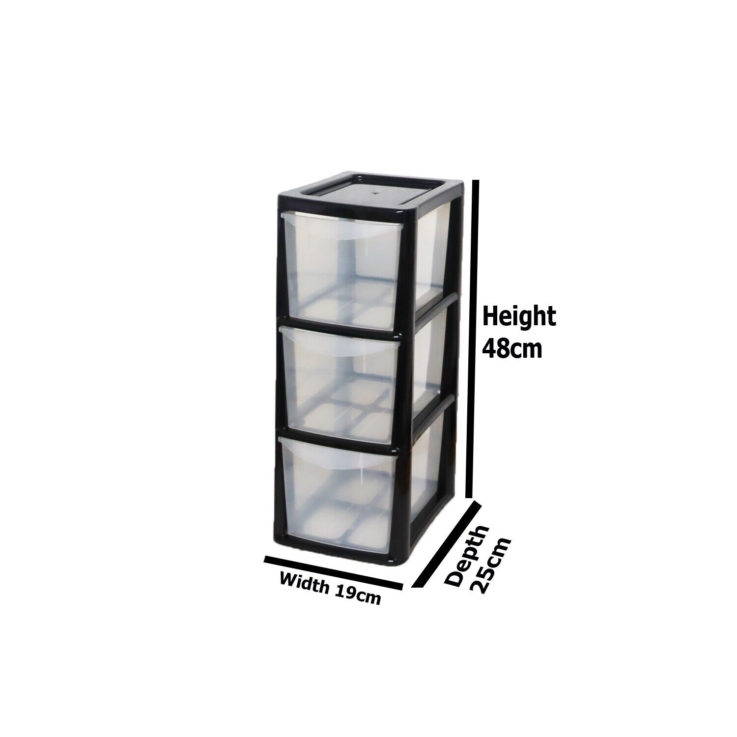 Overall Dimensions: Height 48cm, Width 19cm, Depth 25cm Interior Drawer Height 14cm Depth 24cm Width 15cm